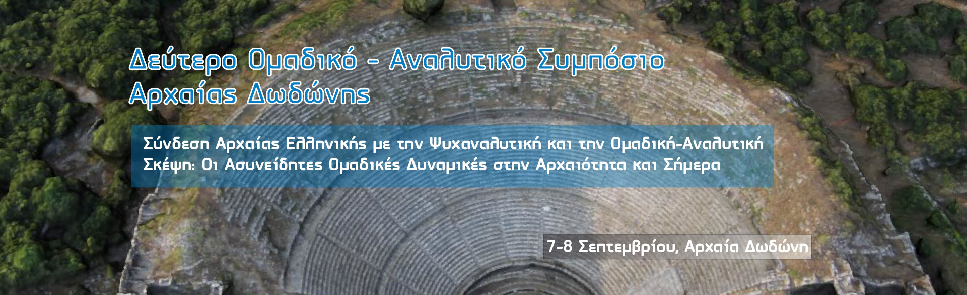 Ο Δήμος Δωδώνης, το Ινστιτούτο Ομαδικής Ανάλυσης “S.H. Foulkes” (Ι.Ο.Α.Φ. – μέλος EGATIN), η Περιφέρεια Ηπείρου και το Πνευματικό Κέντρο του Δήμου Δωδώνης, διοργανώνουν, σε συνεργασία με την Εφορεία Αρχαιοτήτων Ιωαννίνων, το 2ο Διεπιστημονικό Συμπόσιο Αρχαίας Δωδώνης με θέμα: «Σύνδεση Αρχαίας Ελληνικής με την Ψυχαναλυτική και Ομαδική – Αναλυτική σκέψη. Οι Ασυνείδητες Ομαδικές Δυναμικές στην Αρχαιότητα και σήμερα», το οποίο θα λάβει χώρα στη Δωδώνη στις 7 & 8 Σεπτεμβρίου 2019.